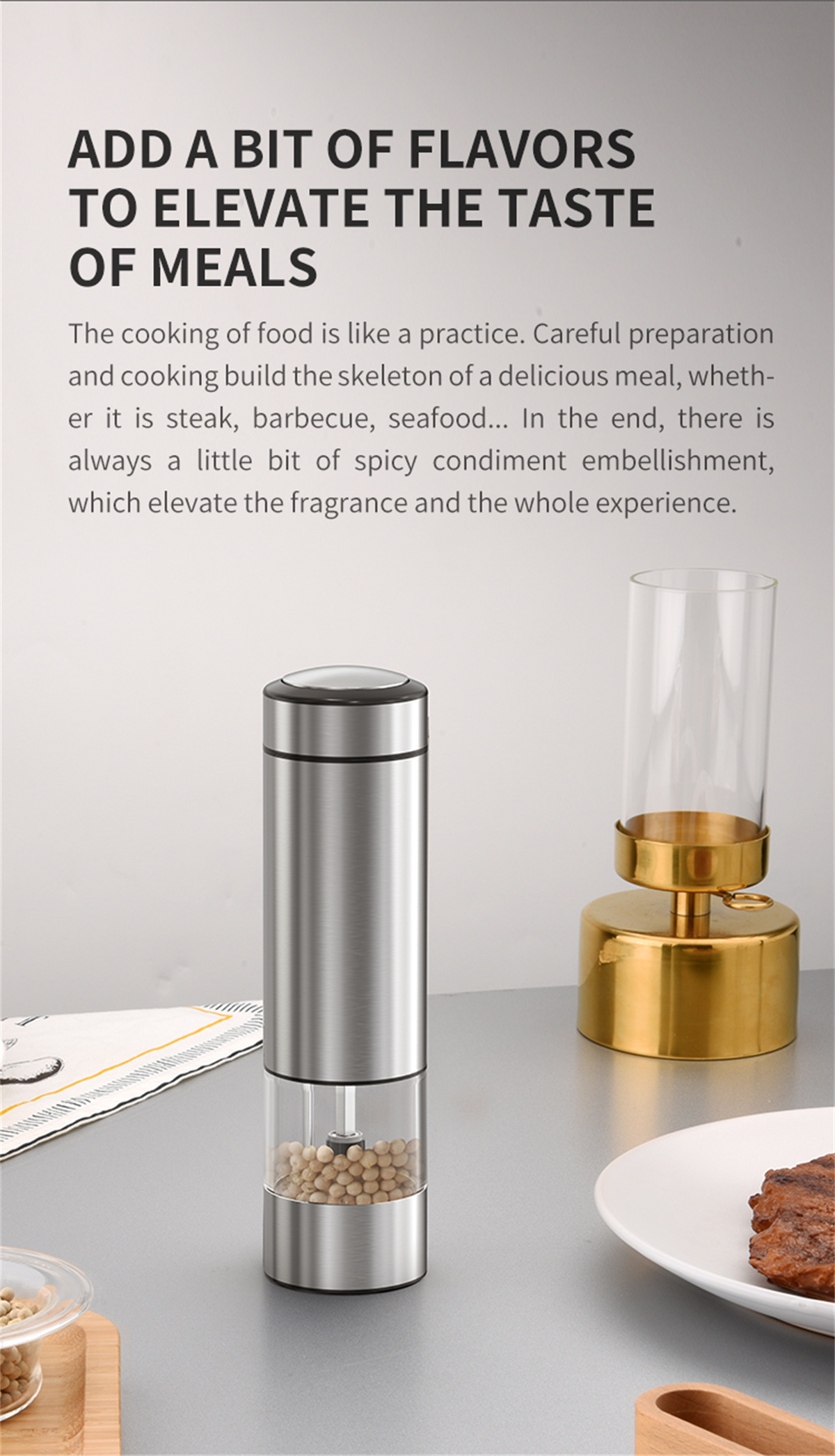 4. The LED light will also turn on automatically during use, you can add the right amount of pepper or salt to your dish perfectly.