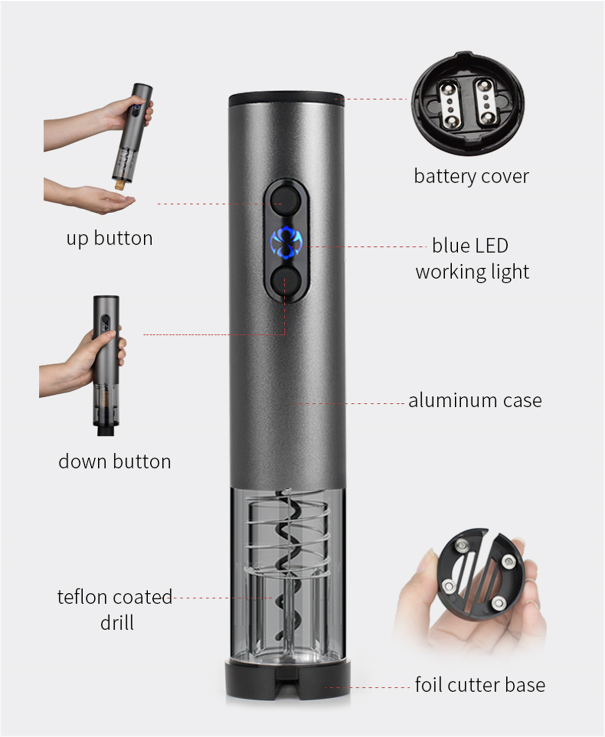 RW25R01 Rechargeable Wine Bottle Opener With LED Logo Display